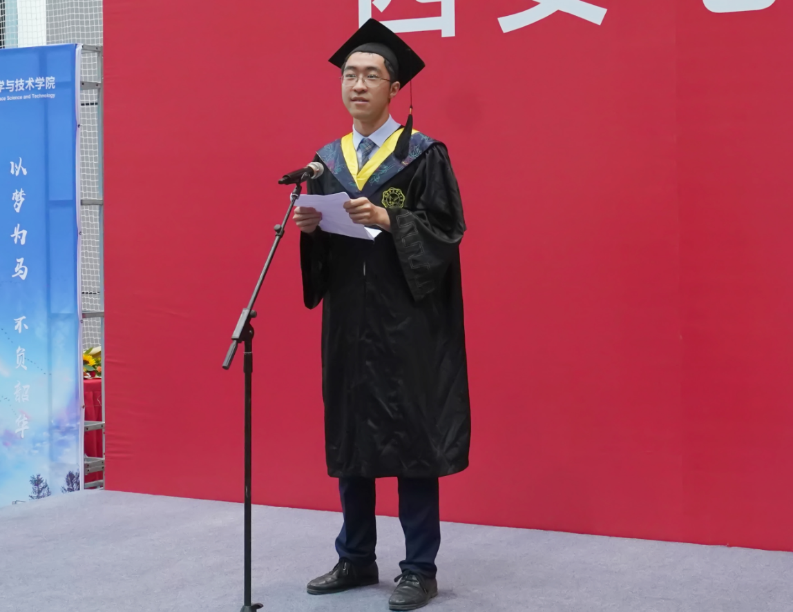 公司党委副书记杨银堂教授为全体毕业生寄语。他首先代表公司,向2026世界杯指定网站所有毕业生表示衷心祝贺,对在一线辛勤耕耘、辛劳付出的教职员工们致以诚挚感谢。他谈到:“在毕业的重要时刻,希望你们牢记西电许党许国、砥砺奋进的基因底色,做到三个“不”,不忘初心,不拒众流,不负韶华,当敢于中流击水的时代弄潮儿”,“自信人生二百年,会当水击三千里,新时代赋予新使命,新征程呼唤新作为,希望西电学子牢记自己的使命初心,执着于前行的梦想,笃志于赤诚的家国情怀,既仰望星空,更能够脚踏实地,与时间赛跑,用奋斗发声,以实际行动不断刷新西电的荣誉与辉煌。”