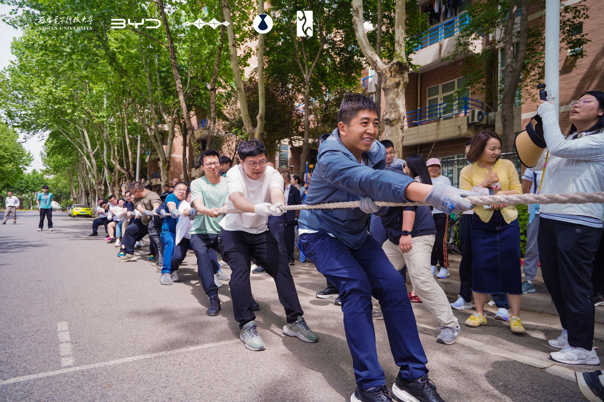 在团体拔河项目中,公司教师们将团结的力量展现得淋漓尽致。他们围成一圈,双手紧紧握住粗壮的拔河绳,眼神坚定地望着彼此,传递着必胜的信念。面对实力强劲的对手,队员们毫无惧色,在整齐而有力的加油声中,齐心协力,默契配合,相互鼓励,在关键时刻爆发出惊人的力量,成功闯入八强。
