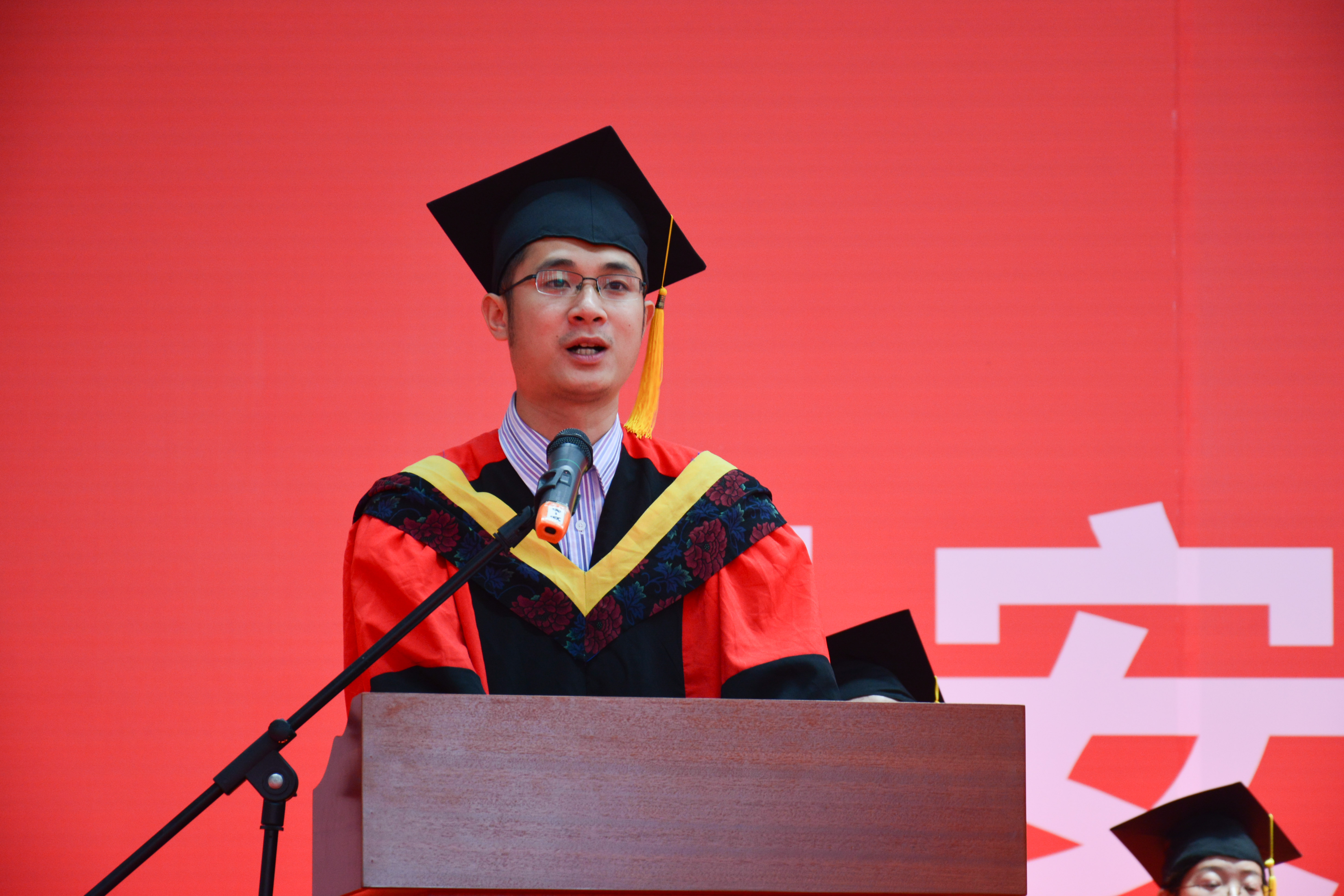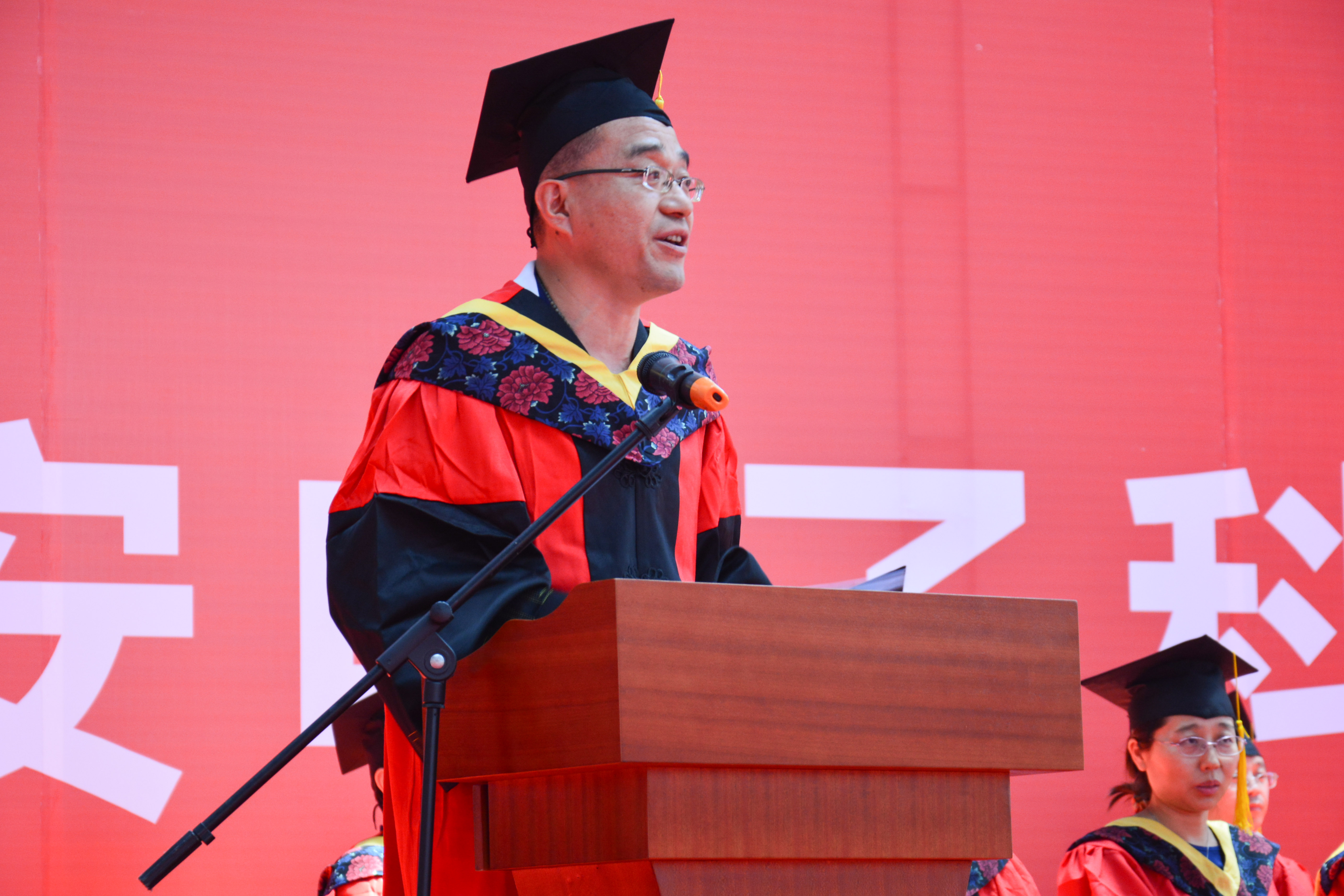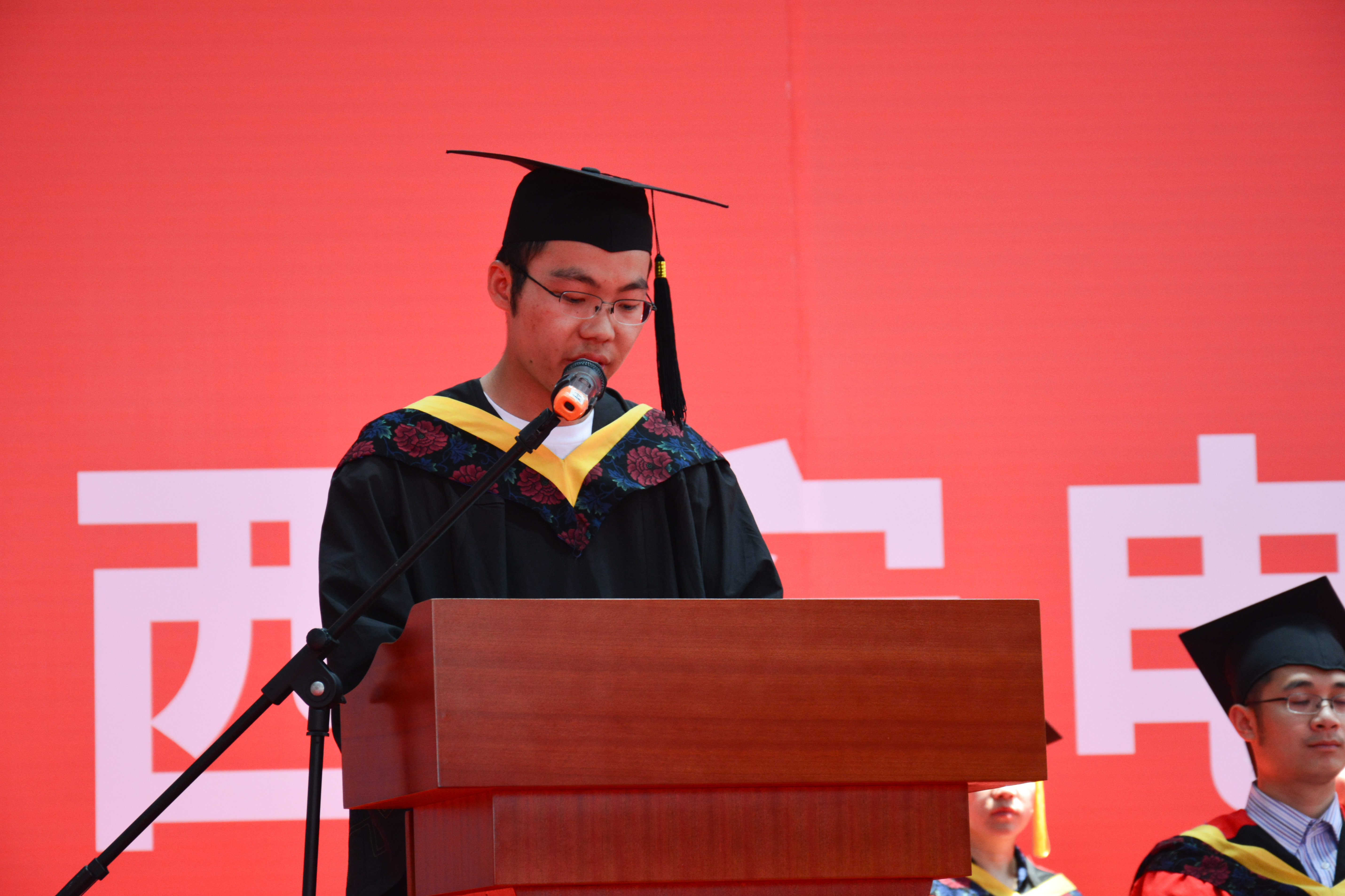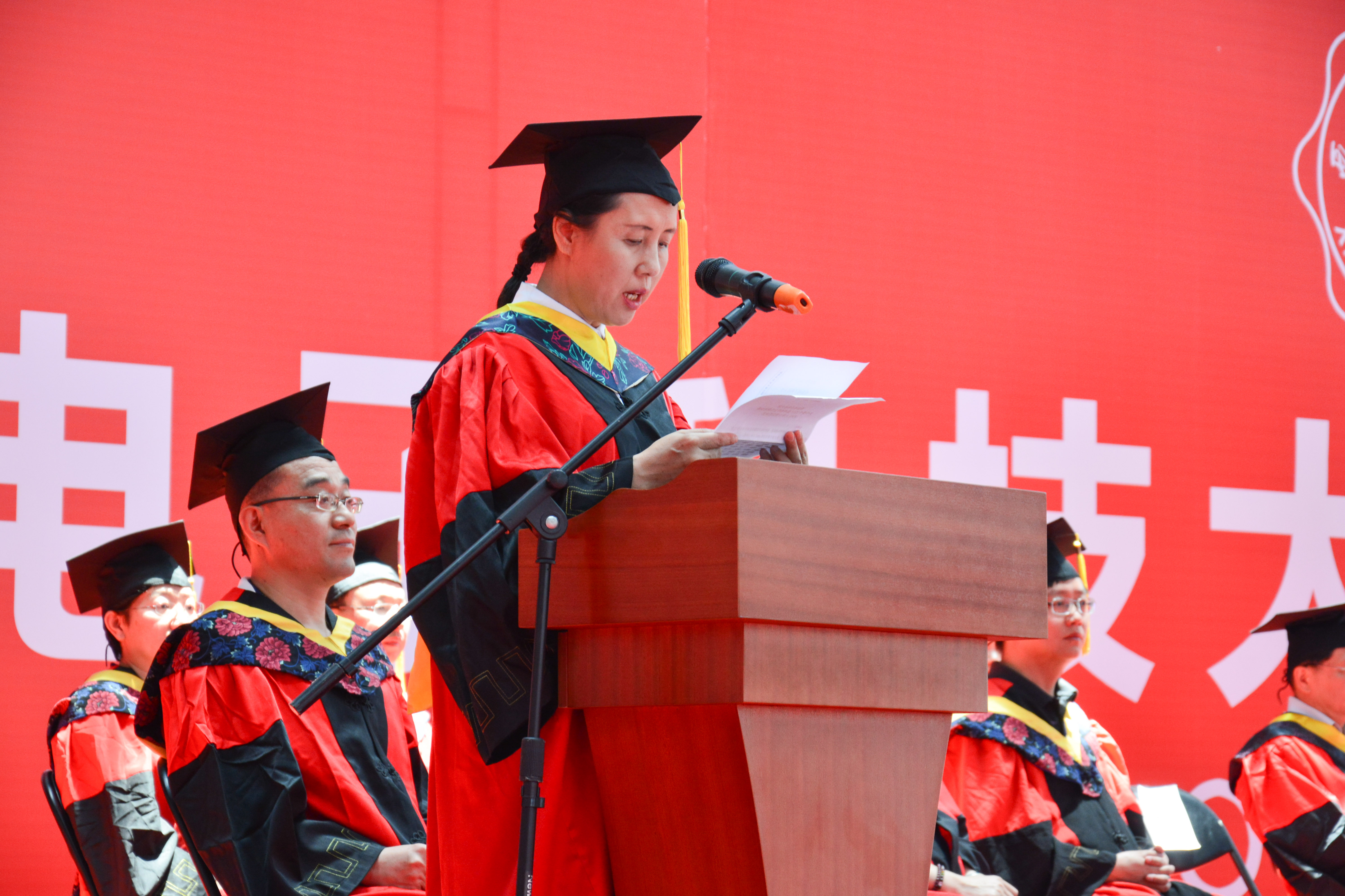 在庄严的奏国歌仪式后,执行经理李小平教授宣读了授位决定。李小平为毕业生寄语:“我们的征途是大海和星辰,心有多大,空间就有多大!”,她号召全体毕业生用刻苦钻研的学习品质、锐意创新的进取精神和全面发展的成才意识,在未来的道路上树立远大的理想,顽强拼搏,取得更优异的成绩。