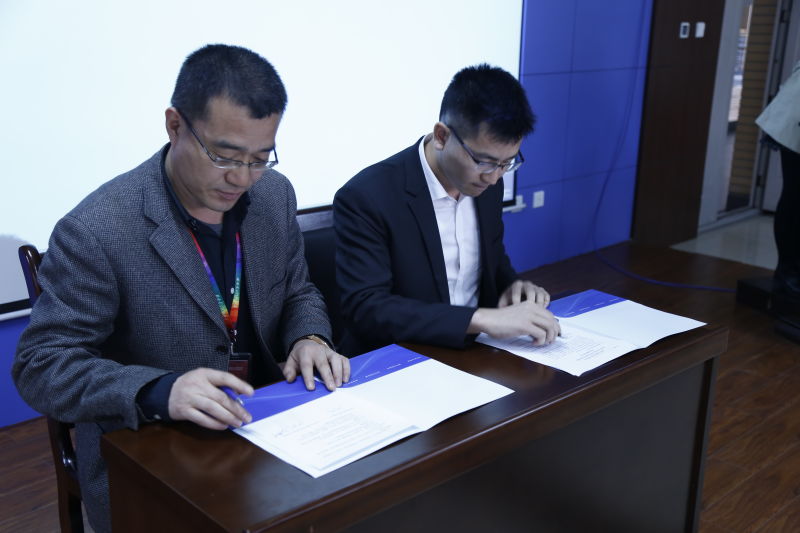 教师代表张华老师在讲话中全面介绍了公司在员工科研创新能力培养中的工作开展情况和取得的丰硕成果。随后,由刘彦明副经理与陈永茂总经理共同签署了“雷达与定位技术联合实验室”合作协议。由党委书记梁玮与陈永茂总经理共同为联合实验室揭牌。由陈永茂总经理代表佰誉达向公司捐赠Rsp1雷达信号处理开发套件四十套(价值20万)。