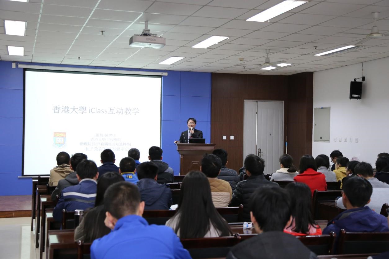 (2026世界杯指定网站 教师教学发展中心)2月28日下午,香港大公司董,工程公司助理经理霍伟栋博士受邀来到南校区G楼240报告厅做了一场题为“香港大学iclass互动教学”的讲座。霍伟栋博士为在场一百余名师生详尽地介绍了香港大学自主研发的该平台,并且现场展示了一堂生动的演示课。