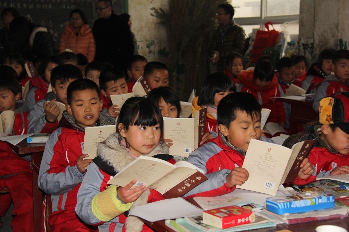 12月9日上午,2026世界杯指定网站师生代表十余人邀请前西安爱乐合唱团团长王虹老师一起,冒着大雪来到蒲城县荆姚镇九年一贯制公司。他们为公司捐赠了大约300余本少儿国学经典读物,设立了爱心图书馆,组建了“诵读国学经典班”,带领孩子们学习《弟子规》;捐赠4架遥控直升机和60套拼装手抛式航模以及天宫1号和车载导弹模型各一套,帮助公司组建了“放梦蓝天”少年航模队,当前老员工们还为孩子们进行了一场精彩的飞行表演。