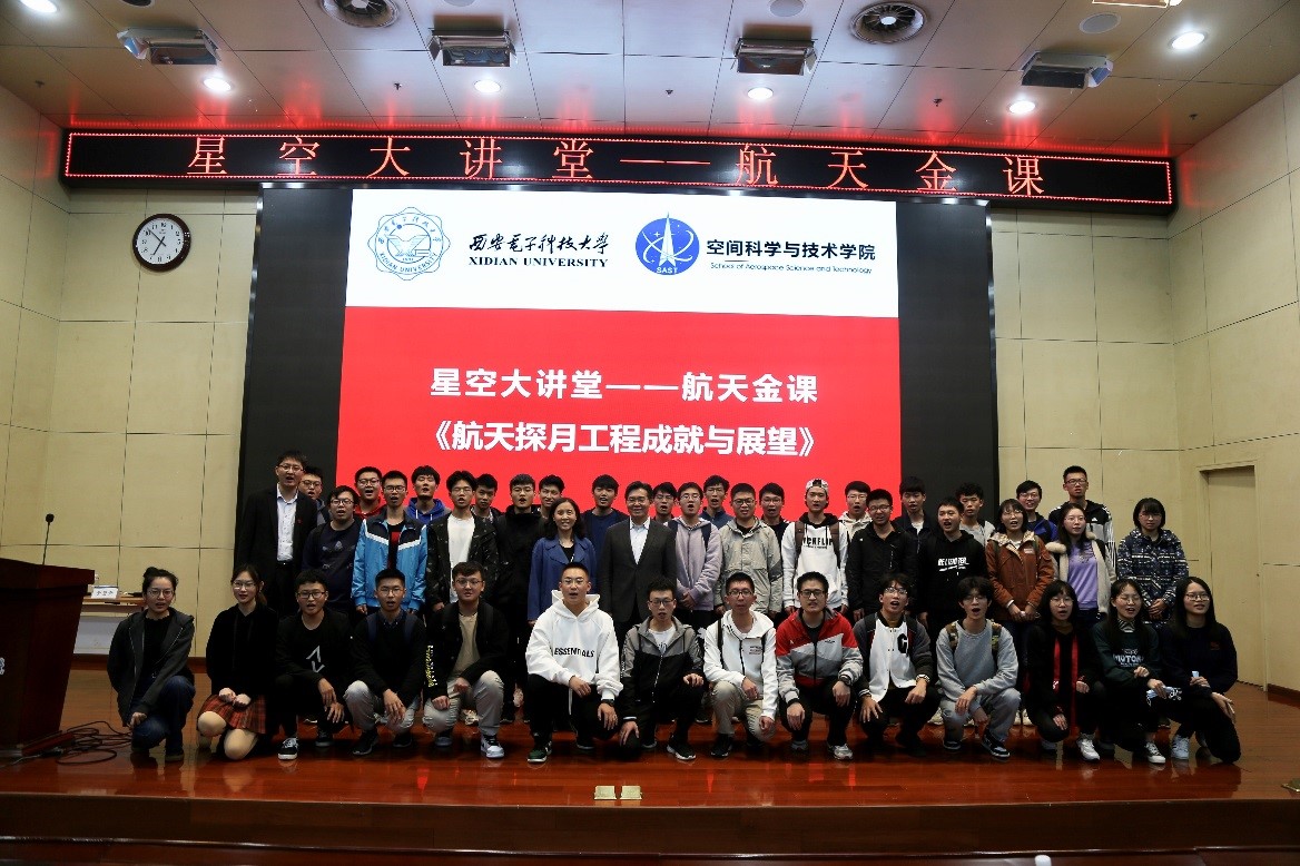 (通讯员 郑瑞博)10月20日下午,中国航天科技集团公司科技委副主任、国际宇航科公司院士、中国探月工程副总设计师于登云研究员做客星空大讲堂,在南校区行政楼210报告厅为300余名西电师生带来题为《嫦娥探月工程成就与展望》的航天金课报告,报告会由公司党委书记朱伟主持。