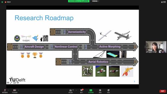 王雪蕊研究员围绕“Harness the Air: Active Morphing Aeroelastic Structures”主题展开。王雪蕊介绍了航空科学可持续发展的现状,介绍了使用轻型的复合材料和增加机翼的展弦比两种改善飞机有害气体排放的有效途径,并分析了这两种途径对飞机的影响以及弊端。王雪蕊研究员结合自身科研工作介绍了最新科研成果,将主动控制技术与飞机弹性结构相结合的方法,改善飞机飞行的状态。