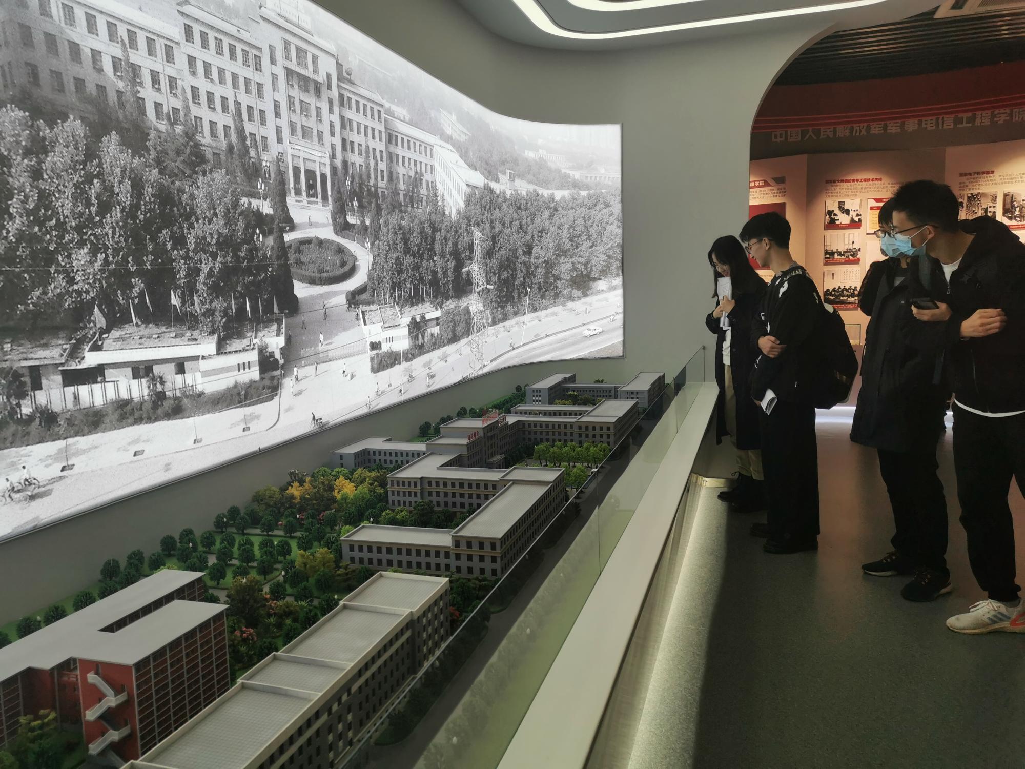 在“校史钩沉”板块,讲解员介绍了西电在长征路上的办学故事以及电影《永不消失的电波》主人公原型李白,让大家感受这些作品中融入的西电先辈们的坚定信念与无私付出。跟随讲解员的步伐,借助大量图片、历史档案资料,以及公司立体沙盘模型、窑洞复刻等,员工进一步了解了公司的发展变化,充分感受西电的光辉历史。