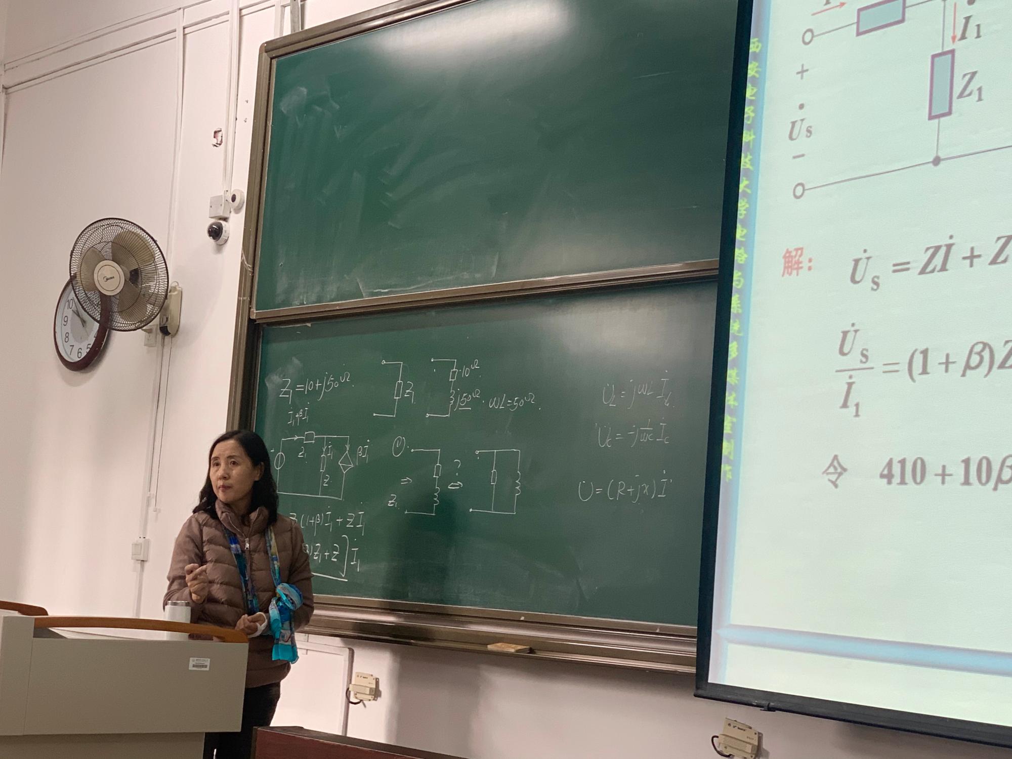 从清晰明了的课件展示到工整的板书推导,从认真细致的讲解到富有启发性的互动,从重点概念的深入讲解到相关知识点的层层推进,李小平的课堂像往常一样引人入胜,丝毫没有她的受伤受到任何影响。员工们被她尽职尽责,对待教学一丝不苟的态度所感染,更加全神贯注地投入到课堂中,也从李小平的一言一行中汲取到了奋发向上的人生力量。电路课代表赵大森的想法代表了同学们的心声:“得知这次李老师受伤后我们也非常担心,没想到老师在左臂骨折的情况下坚持来给我们上课,李老师这种敬业,负责,认真的态度十分值得我们学习,燃起了我们每个人学习的激情和求知的渴望。”