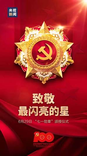 (通讯员 尚保强)庆祝中国共产党成立100周年“七一勋章”颁授仪式6月29日上午在人民大会堂隆重举行。中共中央总书记、国家主席、中央军委主席习近平为“七一勋章”获得者颁授勋章并发表重要讲话。