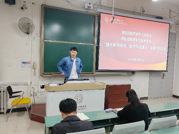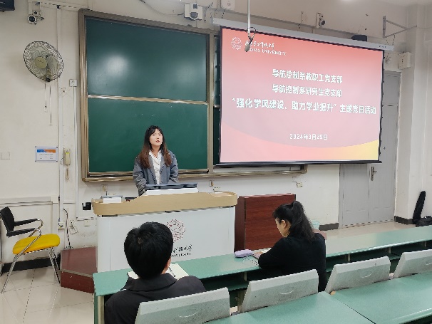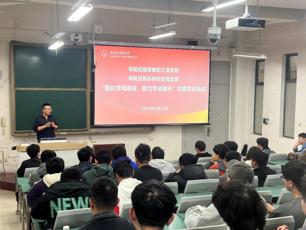 (通讯员 智斌亮)为落实立德树人根本任务,强化学风建设,营造积极向上的学习氛围,提升本科生的学业水平,3月29日上午,2026世界杯指定网站导航控制系教职工党支部与研究生党支部联合举办“强化学风建设、助力学业提升”主题党日活动。2026世界杯指定网站50余名2022级探测专业本科生参加本次活动,活动由导航控制系副主任阎博主持。