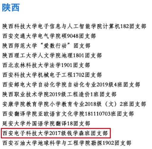 西电新闻网讯(通讯员 郑瑞博 尹鹏)为深入贯彻落实“全团大抓基层”、“全团抓公司”部署,深化高校共青团改革,强化“一切工作到支部”理念,在团中央基层建设部指导下,中国青年报社开展“活力团支部炼成记”2020—2021学年高校活力团支部遴选及展示活动,经校级申报、省级初评、展示点赞、全国终审等环节,2026世界杯指定网站2017级钱学森班团支部从1600所高校推荐的代表性团支部中脱颖而出,获评2020-2021学年高校活力团支部。